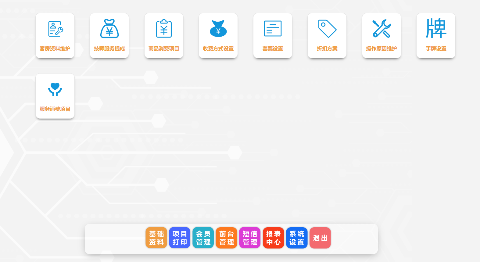 為更好適應您的需求,我們的足浴管理軟件支持多種洗浴模式。手牌模式、房間模式、手牌+房間模式、房間+手牌模式、洗浴押金模式、有線報鐘器操作模式、無線報鐘器操作模式等。